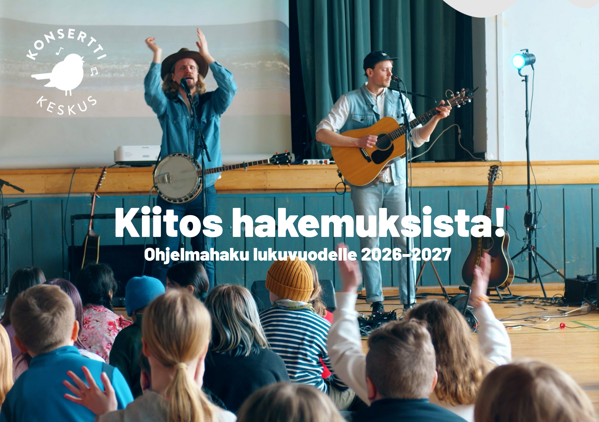 Konserttikeskus (Konsertcentralen rf) on Suomen merkittävin päiväkoti- ja koulukonserttien järjestäjä. Toteutamme vuosittain 1000–1500 konserttia ja musiikkityöpajaa eri puolilla Suomea yhteistyössä paikallisten järjestäjien kanssa. Tutustu konserttitarjontaamme ja tilaa konsertti!